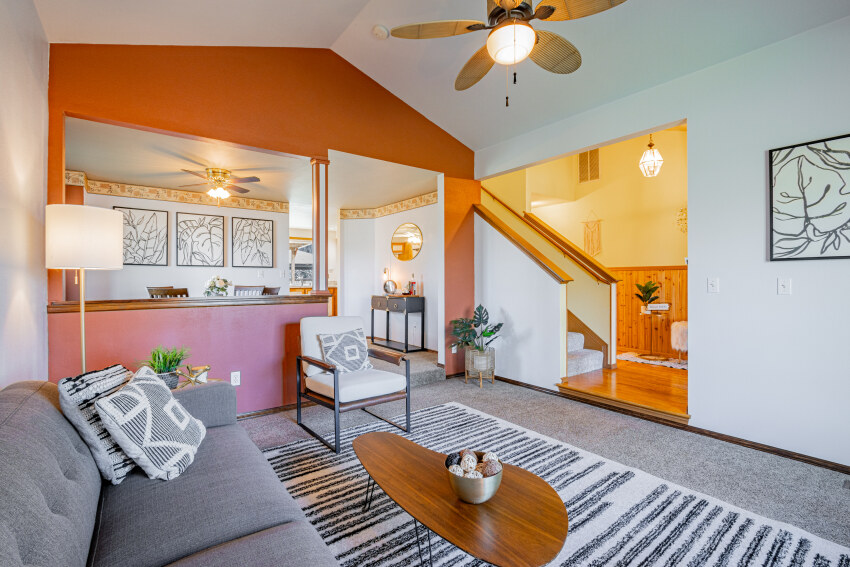 You will love this thoughtfully laid-out floor plan with dramatic vaulted ceilings, large windows that allow for tons of natural light, formal living and dining, and a huge chef’s kitchen with a breakfast nook AND a dine-in bar that opens to the great room with a cozy fireplace, a half bath, and a utility room on the main floor.
