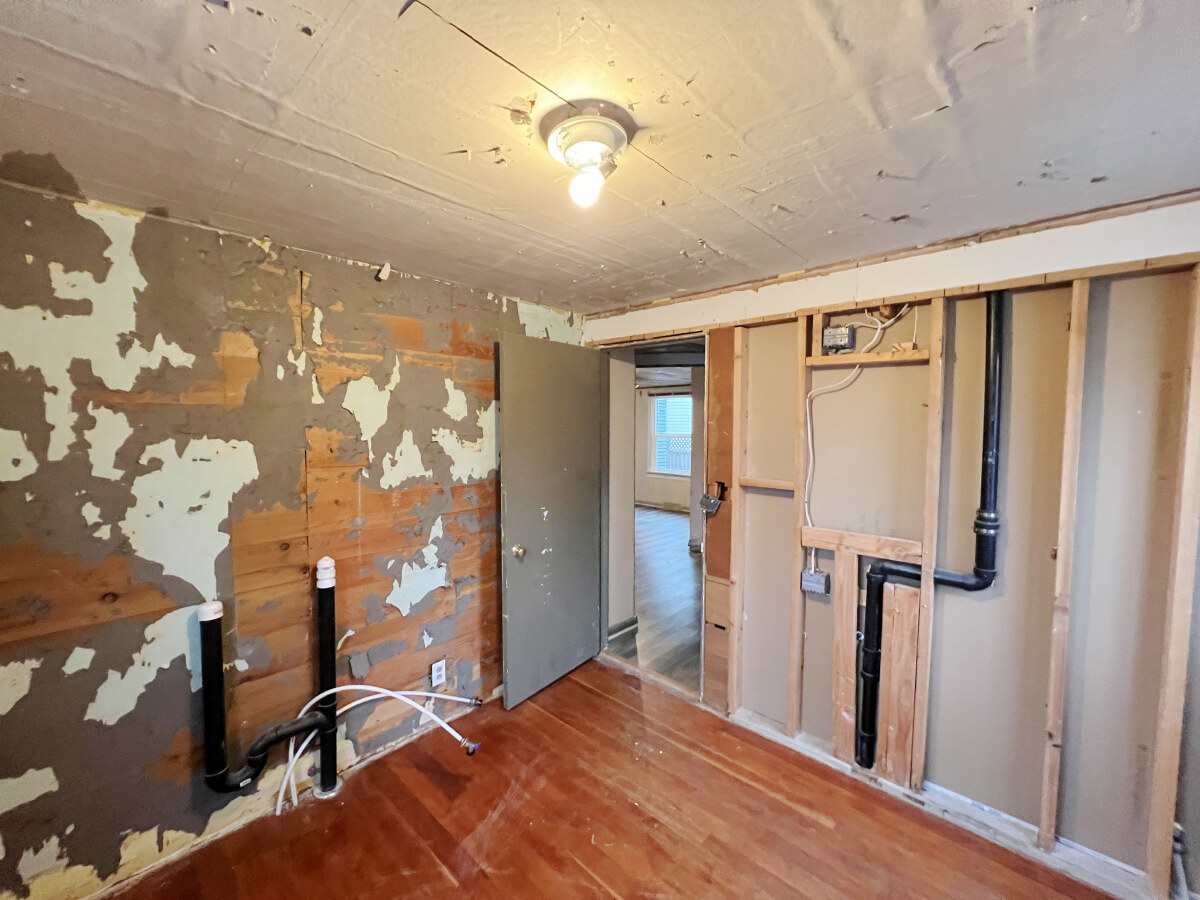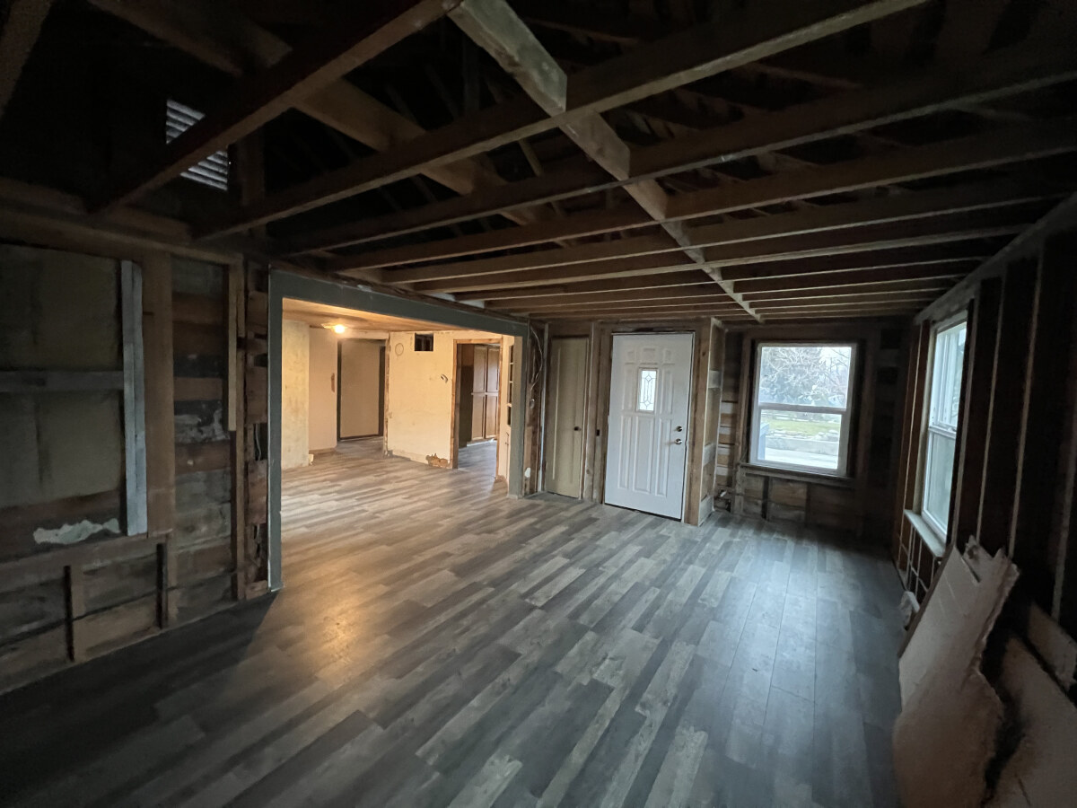 Main floor has kitchen, dining area, living room, bathroom, bedroom, and a potential 3rd bedroom.